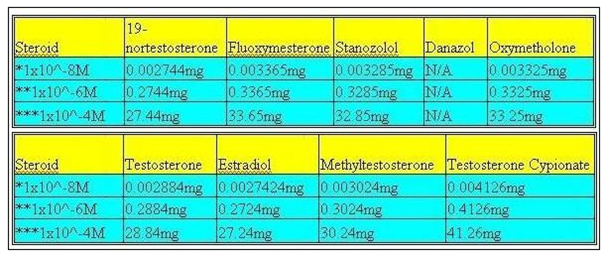 Lets move on to some more useful studies. Take for example a 1995 study that showed the toxic effects of anabolic-androgenic steroids in primary rat hepatic cell cultures[3]. In this study the researchers used the following drugs and dosages:
