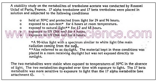 Methyltrienolone as an orally active anabolic agent has been tested with regard to its influence on liver function. As measured by multiple parameters (BSP retention; total bilirubin; activities of transaminases, alkaline phosphatase and cholinesterase in serum; activity of proaccelerin in plasma) methyltrienolone turned out to be very active as to causing biochemical symptoms of intrahepatic cholestasis. To avoid the first pass through the liver and to create an even stronger anabolic effect Hard Core Labs created an subcutaneous Metribolone. More about this later in this article.