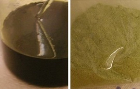 Then of course you need a pure substrate to produce a good product. On the left you see an odd coloured powder that produced a very dark solution. On the net known as “Black Tren.”
